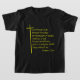 The t-shirt feels and looks great quality, a good thick cotton. It will be a little big for my son, but that means he will be able to wear it and not out grow it too soon. The print was as described on the order when personalised. True size, shape and colour T-shirt- thanks.