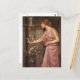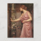 Psyche in flowing pink gown pushes open the gate into a secret garden. Vintage fine art painting by John William Waterhouse. Public domain.