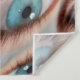 Psychedelic abstract background of distorted eye pattern with one big eye looking real eyes with blue colours splash