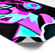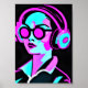 Pink, teal and black abstract AI art. Woman wearing headphones listening to music. generativecontent