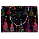 Psychedelic Christmas Trees on Black Large Gift Bag