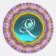 PSYCHEDELIC CIRCLES MONOGRAM blue turquase pink Classic Round Sticker
