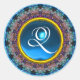 PSYCHEDELIC CIRCLES MONOGRAM blue turquase pink Classic Round Sticker