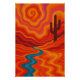 An incandescent desert where each line wavers like a heat wave. In the center, a hypnotizing spiral sun, while a cactus rises like a totem. The shades of orange, fuchsia, red and turquoise merge into an intense visual symphony. A poster that pulses, perfect for creative and bold interiors.