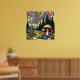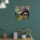 Psychedelic Disc Golf Basket and Retro Mushrooms Poster