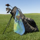 This golf towel shows a stunning artistic elephant, overlaid on a cool blueish green background.
