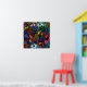 This poster features psychedelic multicolored hibiscus and iris blooms.