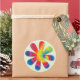 Round sticker with an image of a brightly coloured psychedelic flower on light green. See matching custom-cut vinyl sticker, confetti, favour bag, favour box, favour tag, gift bags, label and wrapping paper. See the entire Disco 70s Sticker collection in the INVITES | Stickers & Labels section.