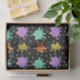 A tossed design featuring cute cartoon frogs in bright neon colours on a black background giving a fun whimsical vibe perfect for the frog lover in your life. This is perfect for any occasion gift giving.