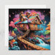 The image is generativecontent. I have made tree house designs but, never made a gingerbread tree house on a design so I thought why not. I liked the water in the design then thought would there be running water at Christmas time? I am not sure what that person is to the right of the roof of the tree house. One of the things I like about the image is the colourful roof.