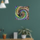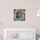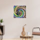 Psychedelic Guitar Swirling Notes Rainbow Music Poster. A retro tie-dye style swirling fractal background with golden musical notes and rainbow music. Put a little colour in your grey. Great gift for your favourite musician, guitar player or music lover.