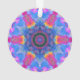 This psychedelic kaleidoscope design features vibrant blue, pink, and yellow.