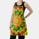 Psychedelic Hippie Flower Green Orange and Red Apron