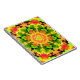 This psychedelic kaleidoscope flower design features a green, orange, and red. Vibrant trippy visuals for the modern hippie or anyone who loves bright colours!