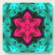 Get some vibrant hippie coasters featuring a pink and teal psychedelic kaleidoscope design.