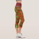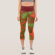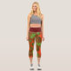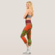 These psychedelic leggings feature bright red and green in an asymmetrical kaleidoscope pattern.