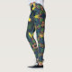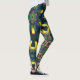 These psychedelic leggings feature bright yellow with deep blue and green in an asymmetrical kaleidoscope pattern.