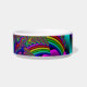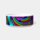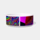 This is a heavy, durable bowl decorated with Tibbies of many colors, the perfect size for hungry/thirsty Tibs. The design is interesting and printing clear.