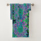 Psychedelic Magenta, Aqua and Lime Green Dahlia Bath Towel Set