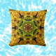 Psychedelic Mandala Flower Green and Yellow Cushion
