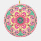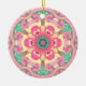 Psychedelic Mandala Flower Green Pink and Yellow Ceramic Tree Decoration