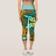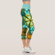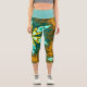 Psychedelic Mandala Flower Teal and Yellow Capri Leggings