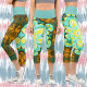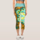 Psychedelic Mandala Flower Teal and Yellow Capri Leggings