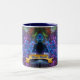 fractal art mixture with yoga meditation silhouette in the centre joining both sides into balance : customisable text for name, affirmation, business name and and short text