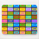 A design made up of multi-coloured retro cassette tape images.