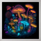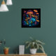 Psychedelic Mushroom Poster Neon Bright Dark Glow