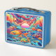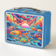 This is a standard metal lunchbox that appears to work just fine. We designed this box ourselves with an uploaded photo and custom text on the front and back. It looks absolutely beautiful except the front of the lunchbox is not centered like it shows in the photo. The print borders don't align with the inset flat part of the box where the preview photo online showed it perfectly centered in there. The back looks nice and centered though.