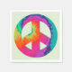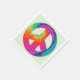 Package of 50 white paper cocktail napkins with an image of a brightly coloured psychedelic peace symbol on light green. See matching cloth napkin, kitchen towel, cloth placemat, paper placemat and coasters. See the entire Disco 70s Napkin collection in the FOOD/BEV | Linens section.