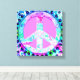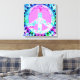 Peace sign with dots and swirls in hot neon shades of pink, blue, green and yellow, by Justin Allen. Cool cute colourful beautiful artistic hippie trippy psychedelic vintage retro sixties style spiritual inspirational abstract art.