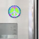 Peace sign with dots and swirls in hot neon shades of pink, blue, green and yellow, by Justin Allen. Cool cute colourful beautiful artistic hippie trippy psychedelic vintage retro sixties style spiritual inspirational abstract art.