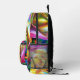 A mesmerising digital painting of a rose bursting with psychedelic energy and rainbow hues. The vivid pink petals wrap around a glowing golden core, creating a surreal floral centerpiece.