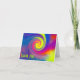 A pretty groovy and trippy psychedelic wedding thank you card. Unique and out of the ordinary. Thank you written in an art deco lime green font. A bright and colourful abstract swirl of colours. A kaleidoscope of colours which are swirling around into a spiral whirlpool. Vivid and bright rainbow of colours such as yellow, pink, purple and blue. Thank you message inside the card which you can customise.