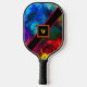 Psychedelic Red Yellow Blue Cosmic Clouds Monogram Pickleball Paddle