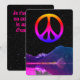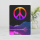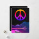 Psychedelic retro peace sign on lake in space holiday card