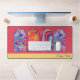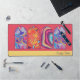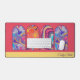 Vibrant psychedelic retro design for desk mat. Stylish hipster groovy frame. Easily editable template for personal name.