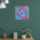 Psychedelic Retro Rainbow Blue Hibiscus Poster