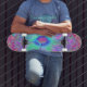 Psychedelic Retro Rainbow Blue Hibiscus Skateboard