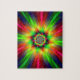 An abstract fractal image with a colourful star burst design in red, pink, yellow, green and blue. As well as puzzles this design is also available on most other products. If you need help or would like me to make changes to this or any other item email me. objowl at gmail.com. No obligation just pleased to be of service.