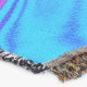A quality printed throw has its advantages. This is a much finer weave throw than its loopier cousins, and though lighter, it is worth the investment for custom room accessorizing. The back is much prettier than the typical brown, and the fringe on the long sides very vivid, the selvage nicely done. Before photographing, I washed the throw in cold water, delicate, with a thicker woven throw the same size. On tumble dry low, this throw was dry in half the time as the other. This is a very practical quality if you use throws for furniture covers or to wrap up in frequently. The sleekness of the fabric makes it a great layer for accenting or protecting without the feeling of sitting on too much stuff. Perfect for napping or when you feel a light chill coming on. The color printing is beautiful and on this fabric, matched the design and color of my Photoshop image. This is an advantage for blending room fabrics and colors. The fringe on the short sides prints the colors from the design image and therefore varies from the side fringe. I streaked a white fractal line through the plaid pattern to give the illusion of weaving. This printed as crisp as an illusory thread, and put some white in the short side fringe, showing another advantage of print vs loomed- for artistic purposes, line lines, detail, and color integrity can be planned and preserved. My loomed throws have color limitations and more of a needlepoint texture. Print throws reproduce an exact image. The throw felt a little stiff straight out of the package, but this went away in the first delicate wash. Of course I searched the wash water for ink or bleeding and there was none.