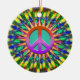 Groovy peace sign sunshine geometric mandala customisable ceramic ornament in bright fun colourful trippy psychedelic swirls. Makes a great personalised gift idea ~ keepsake gift ~ decorate and hang this positive happy energy ornament in your home or office!