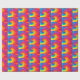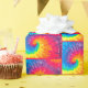 Bold psychedelic tie dye abstract design with neon colours and red outline.