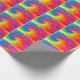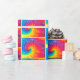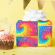 Bold psychedelic tie dye abstract design with neon colours and yellow outline.