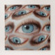 Psychedelic abstract background of distorted eye pattern with one big eye looking real eyes with blue colours splash