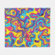 This artwork presents a vibrant and energetic composition of swirling, wavy lines in a kaleidoscope of colours. The design features bold, overlapping shapes in electric hues of yellow, blue, pink, purple, and orange, creating a dynamic and fluid movement throughout the piece. The undulating forms and intense colour palette evoke a sense of psychedelia, reminiscent of 1960s and 1970s art. The interplay of curves and contrasts makes the artwork visually stimulating and full of life.