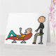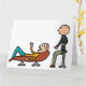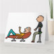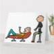 Psychotherapy design shows patient relaxing on psychiatrists couch talking to psychotherapist who is listening intently or sleeping. This counselling from a trained psychologist or psychoanalyst will help with the bill for analysis. Psychology humor!