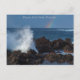 Atlantic waves crashing onto the rocky shore at Puerto de la Cruz, Tenerife, Canary Islands, with a small rainbow out at sea - a great image for this annotated postcard